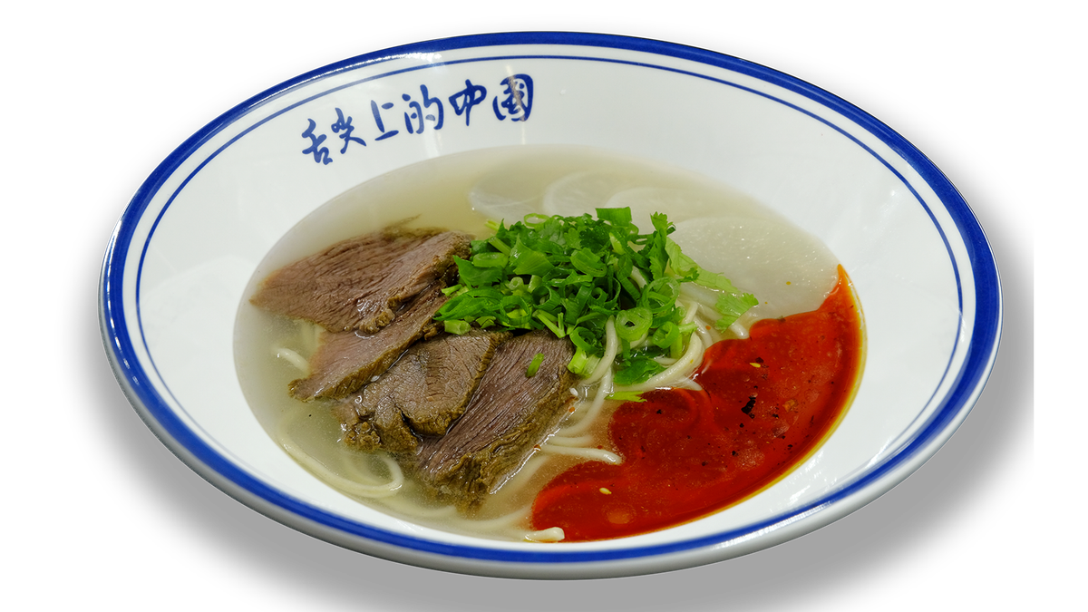 Traditionelle chinesische Nudelsuppe mit handgezogenen Nudeln aus einer Mischung von Weizenmehl und Ei. Serviert in einer reichhaltigen Brühe aus Hühner-, Rinder- und Schweineknochen, die langsam gekocht wird. Mit frischen Zutaten wie Rindfleisch und Gemüse. Ein wärmendes und sättigendes Gericht.