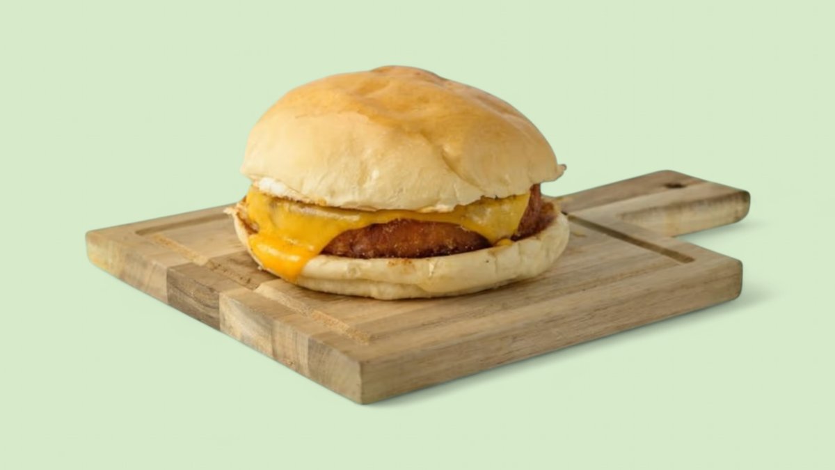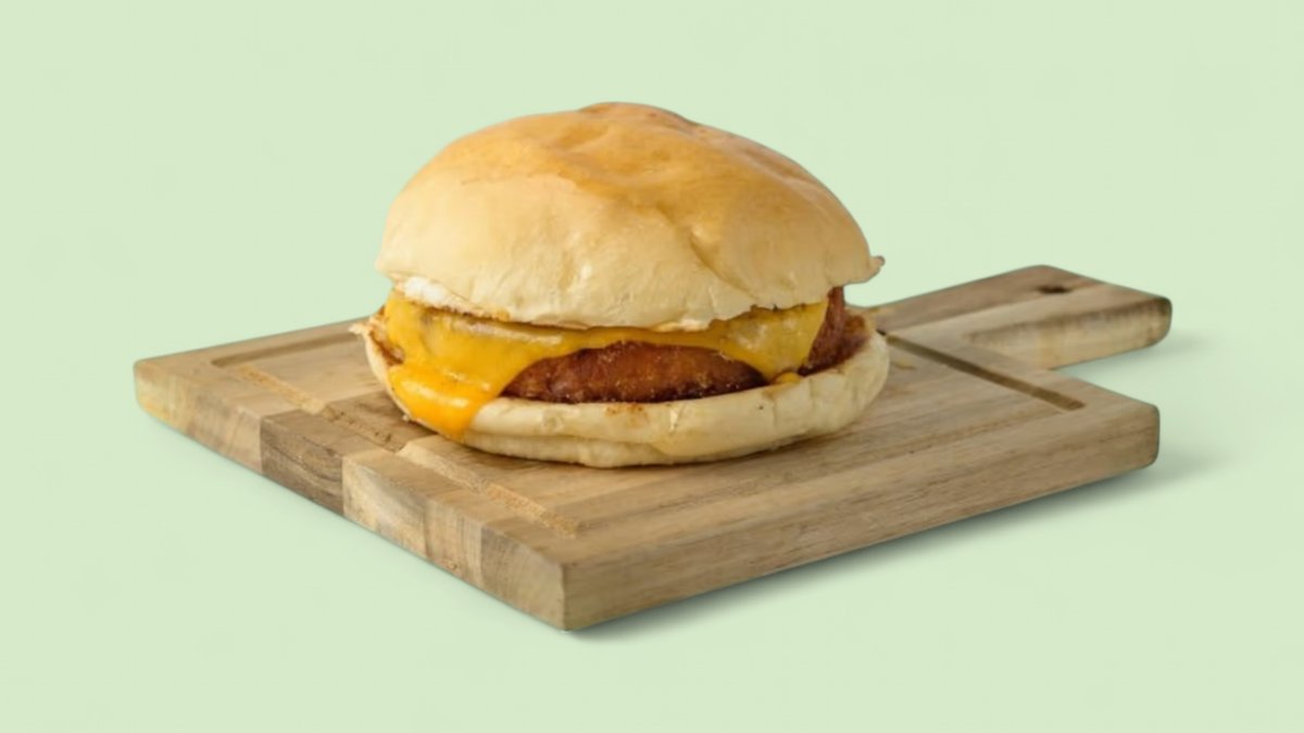 patty from a nacho breading filled with vegetables, with double Cheddar cheese, rocket and truffle-mayonnaise sauce