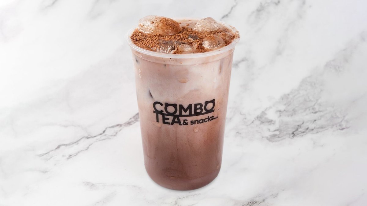 Schokoladen-Milchtee Das Gericht wurde mit Schokolade zubereitet und kann Spuren von Nüssen enthalten