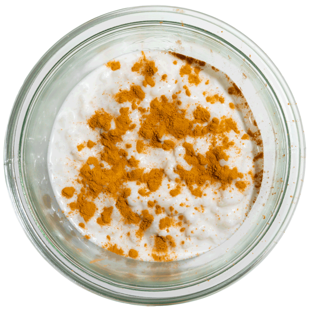 mit Kokosmilchreis, Zimt und Rohrzucker