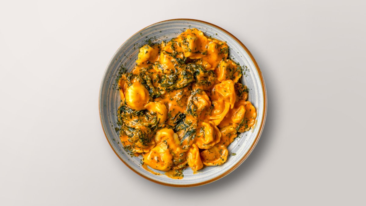 mit Spinat, Knoblauch und mit Käse und Sahne-Tomatensoße überbacken