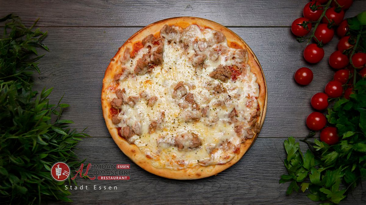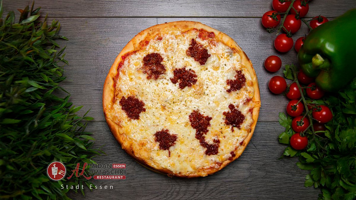 alle Pizzen werden mit Käse und Tomatensoße zubereitet
