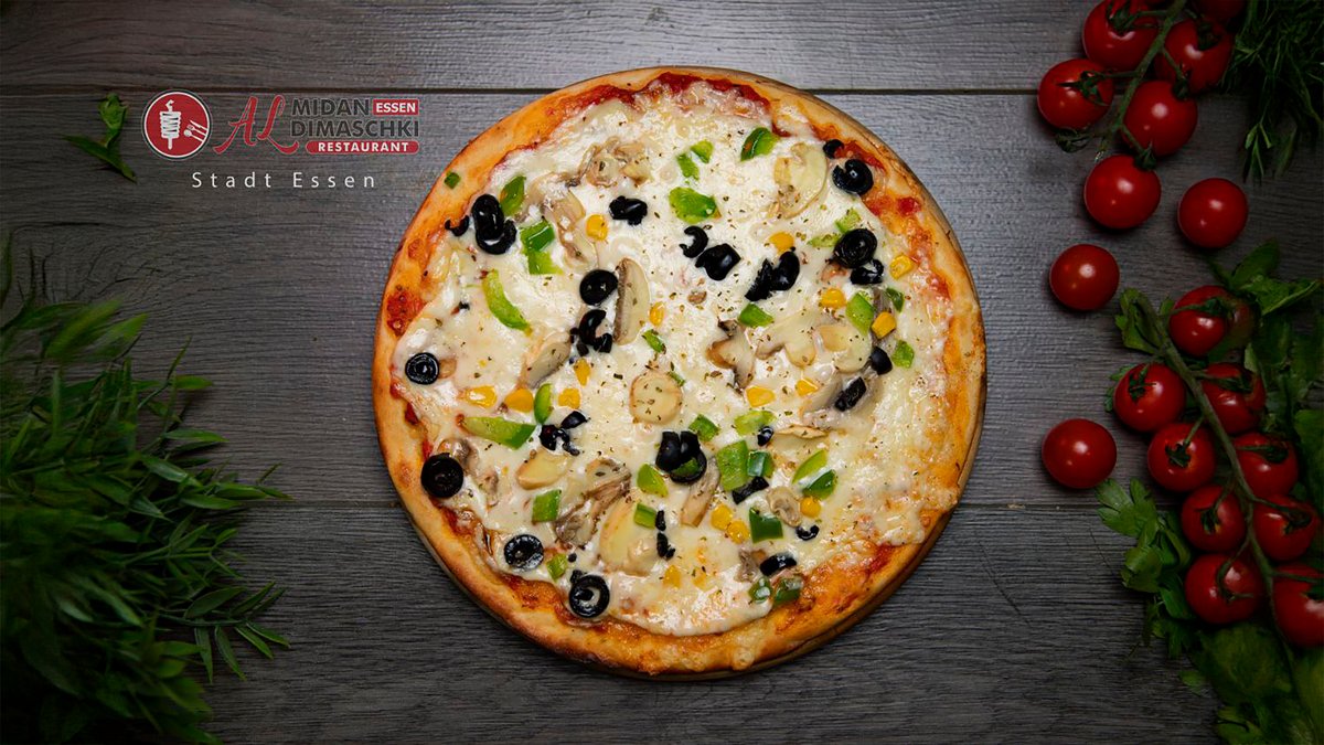 mit Oliven, Champignons und grünen Paprika 24 cm