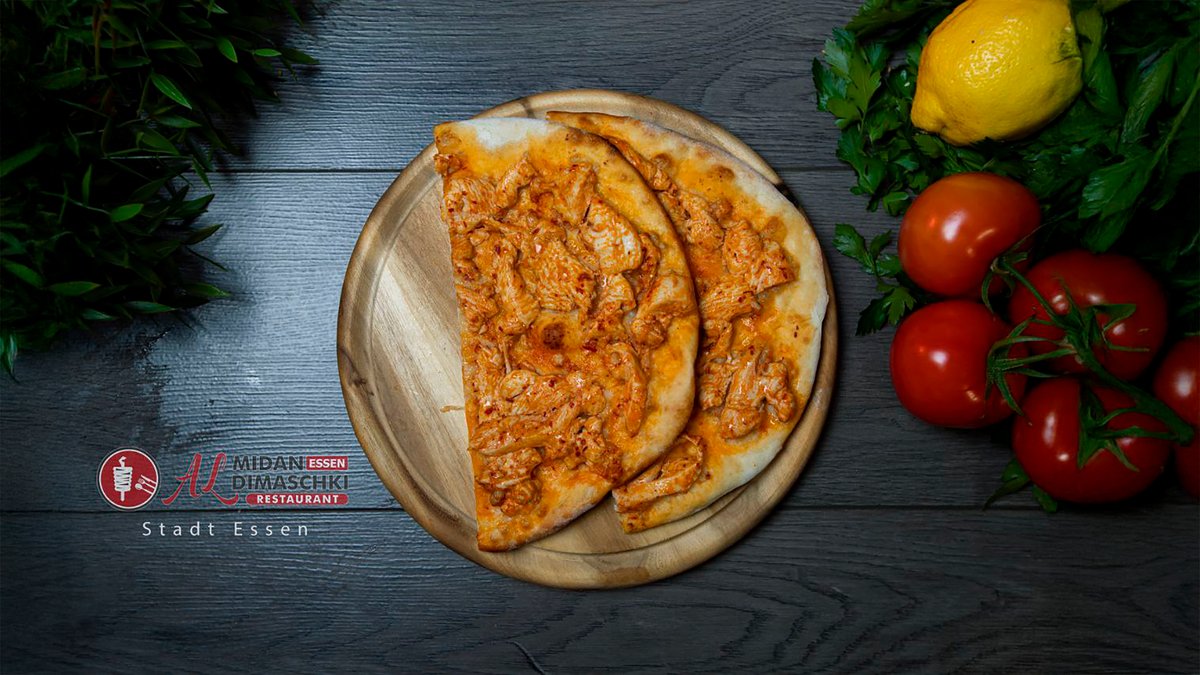 mit Hähnchenstücken, Gewürzen und Knoblauchsoße