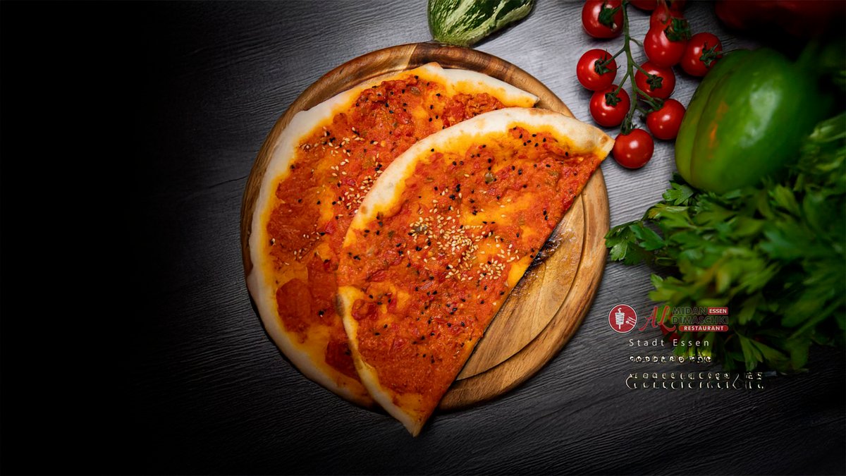 mit Kalbfleisch, Tomaten, Zwiebeln und Granatapfelsirup