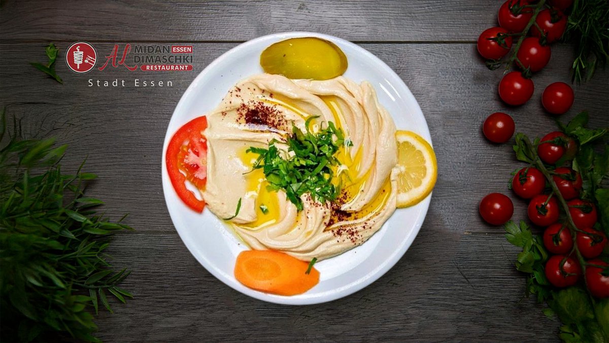 mit pürierten Kichererbsen, Sesamöl und Joghurt