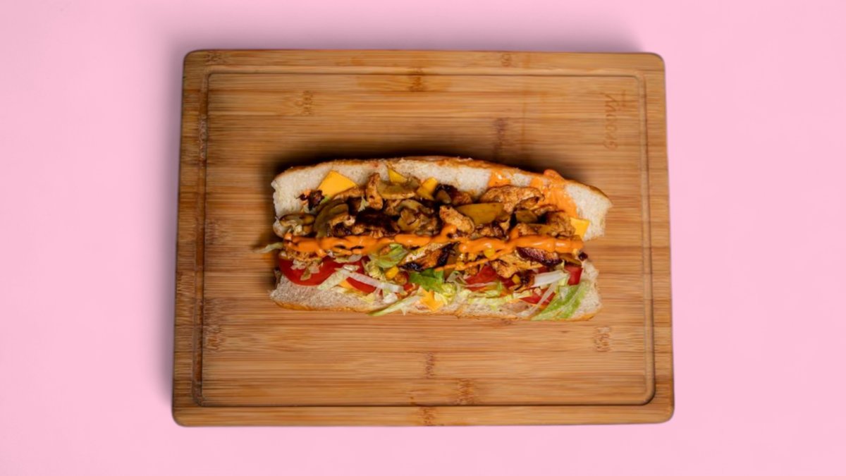 mittelscharf Hähnchenfilet mit Paprika, Sojasoße, Pommes frites, Cocktailsoße, Cheddar-Käse Das Menü enthält: Pommes frites, Knoblauch- Dip, Gemüse Sauer Eingelegt, und Krautsalat