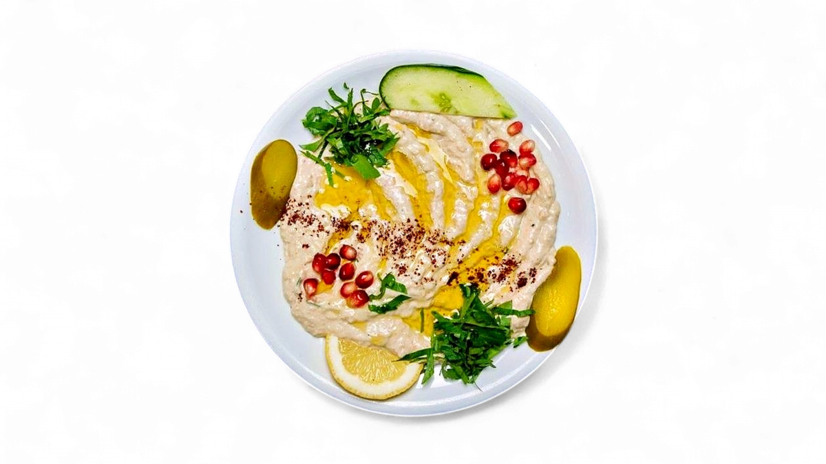 with pureed chickpeas, sesame oil and yoghurt