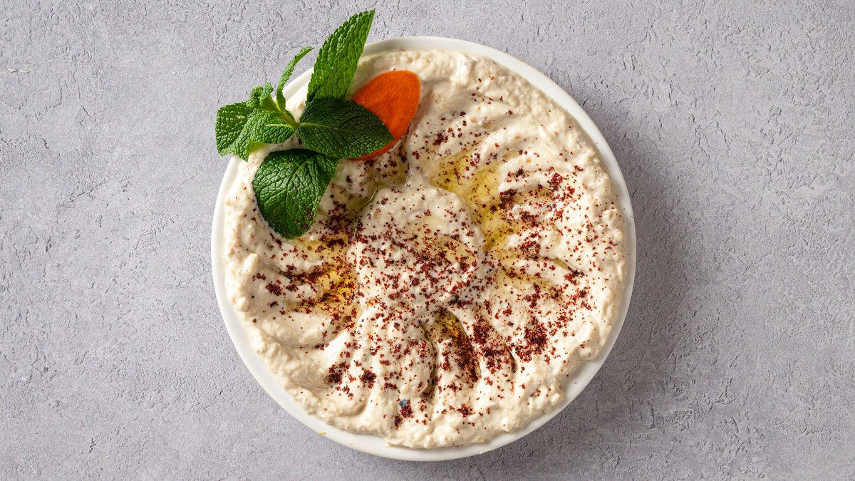 eggplant puree with garlic, parsley, sesame paste and olive oil