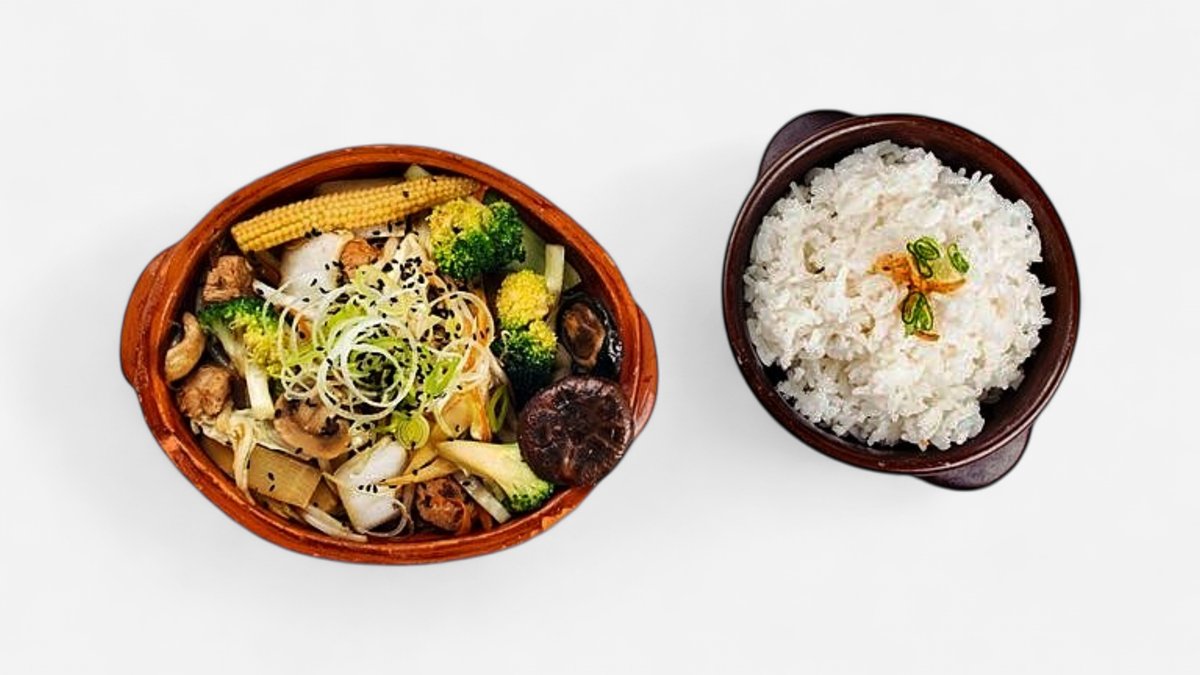 mit Reis und einer Soße deiner Wahl