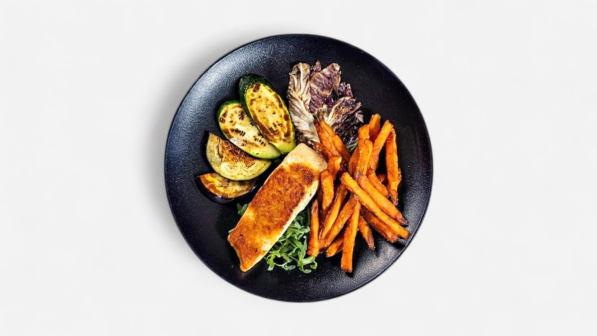 mit einem Fleisch und einer Gemüsebeilage deiner Wahl