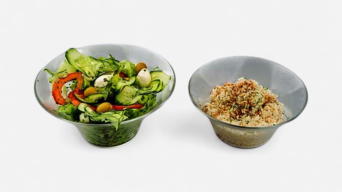 mit Salat, einer Soße und einer Beilage deiner Wahl