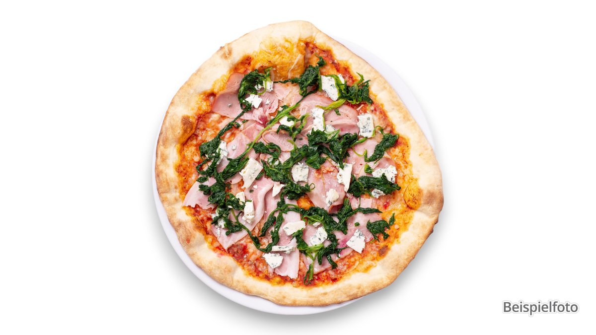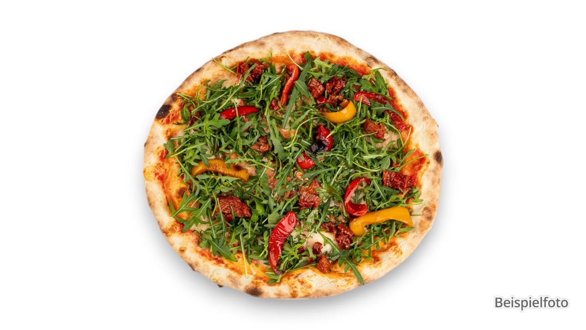 alle Pizzen werden in der Größe von Ø 50 cm sowie mit Tomatensoße und Käse zubereitet