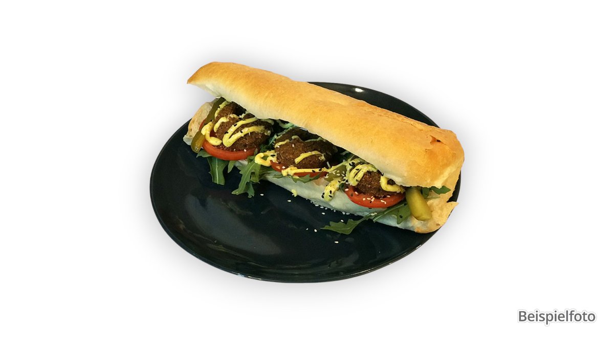 alle Weizenbaguette werden mit Remoulade, Tomaten, Gurken und Eisbergsalat zubereitet