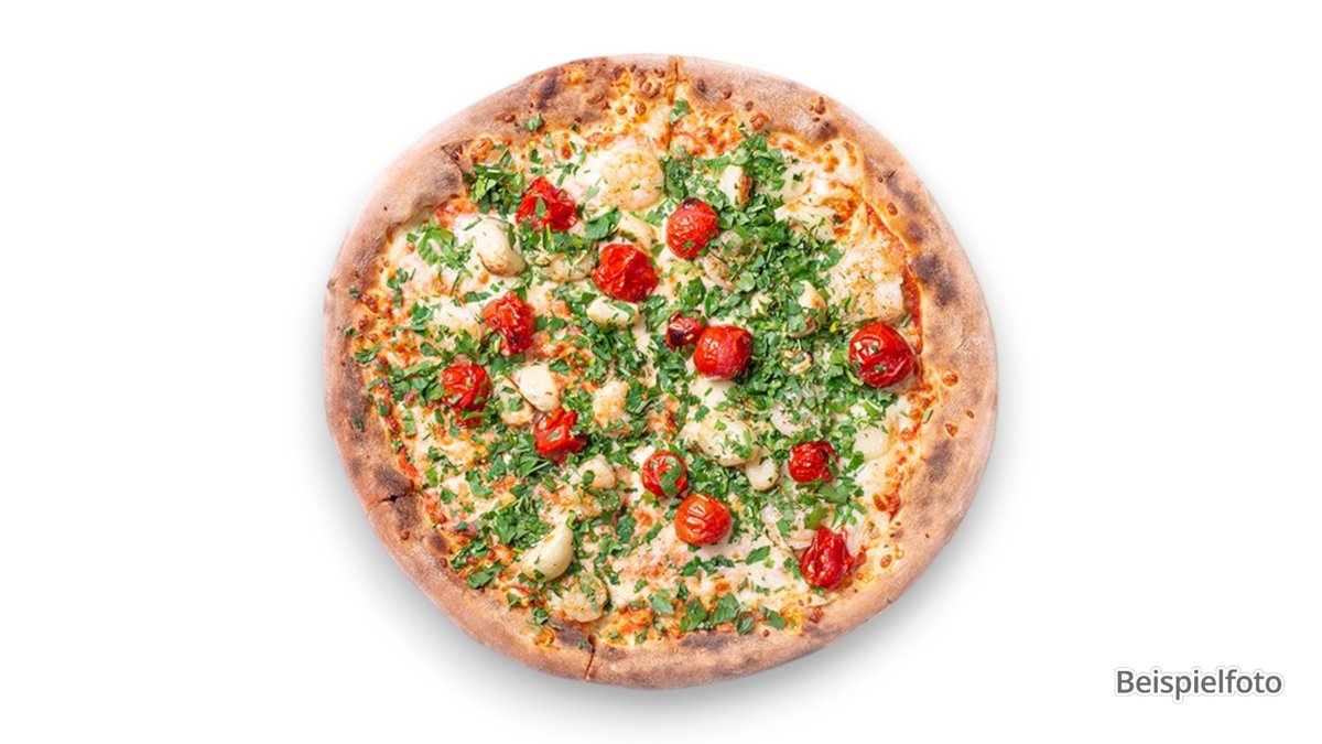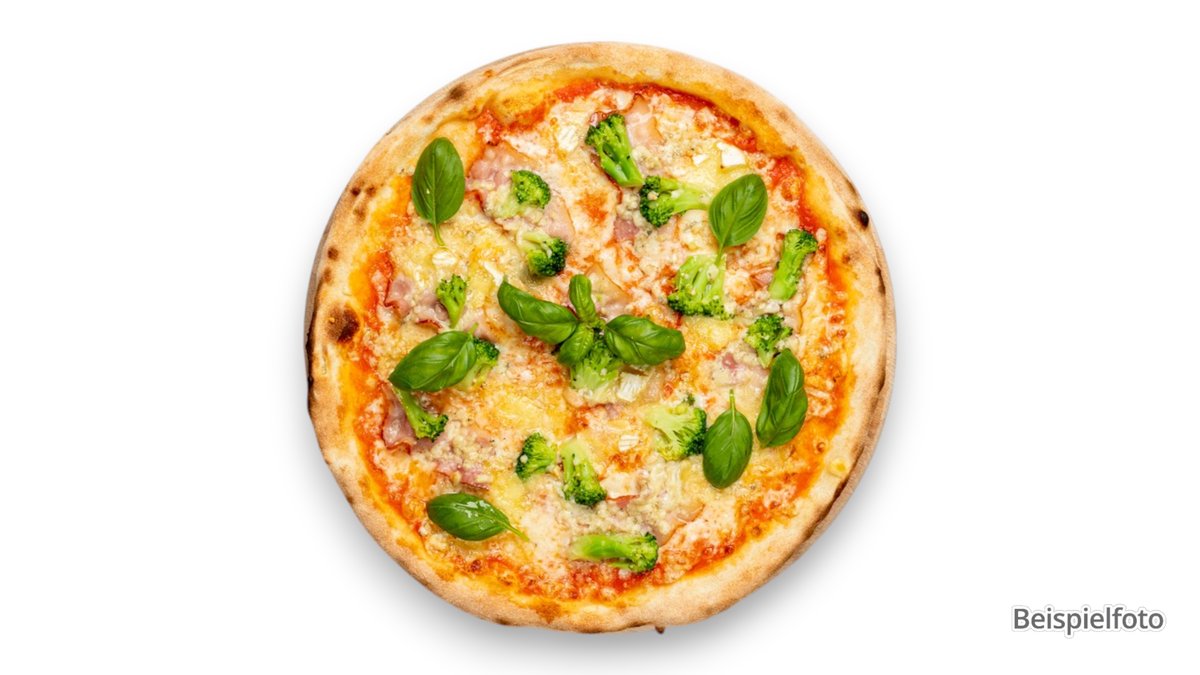 alle Pizzen werden mit Weizenteig, Tomatensoße und Gouda zubereitet und in einer Größe deiner Wahl serviert („41. Pizza Mozzarella” wird ohne Gouda zubereitet)