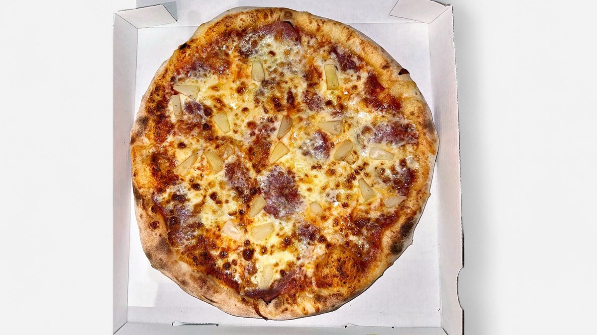 all pizzas are prepared with tomato sauce, cheese, and oregano and served in a size of your choice ("20. Calzone" and "35. Döner Special Calzone" are served in one size only)