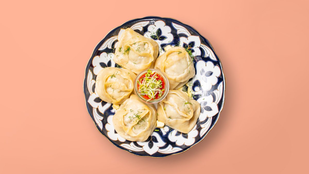 traditional russian dumplings with beef and pork filling, served in broth or vegetable broth with sour cream and adjika