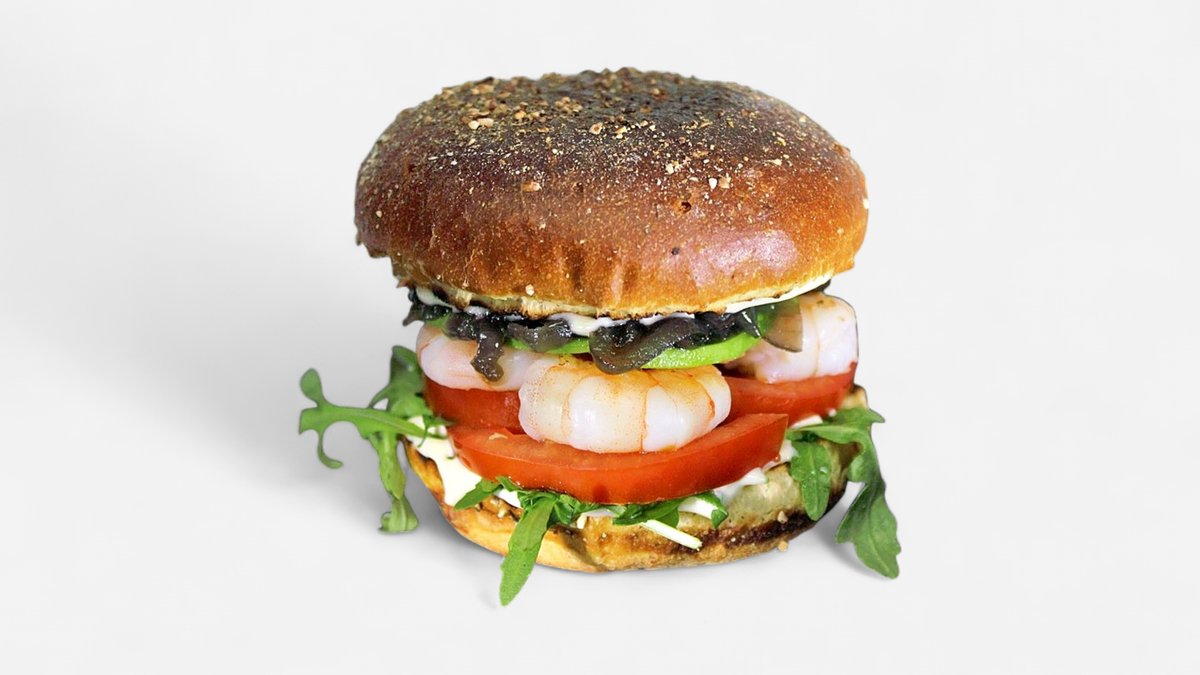 1x Gambas Burger 1x Pommes frites 1x alkoholfreies Getränk deiner Wahl