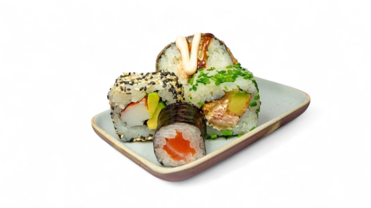 18 pieces baked in tempura with 6x Maki Sake Avocado 6x Maki Surimi 6x Maki Tuna