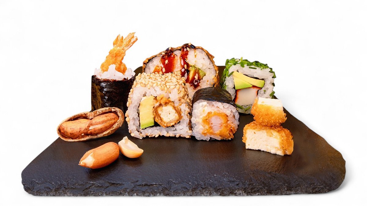 28 pieces 8x Inside-Out Onion Sake Tempura 8x Inside-Out Crispy Chicken 6x For You Chicken 8x Maki Kappa