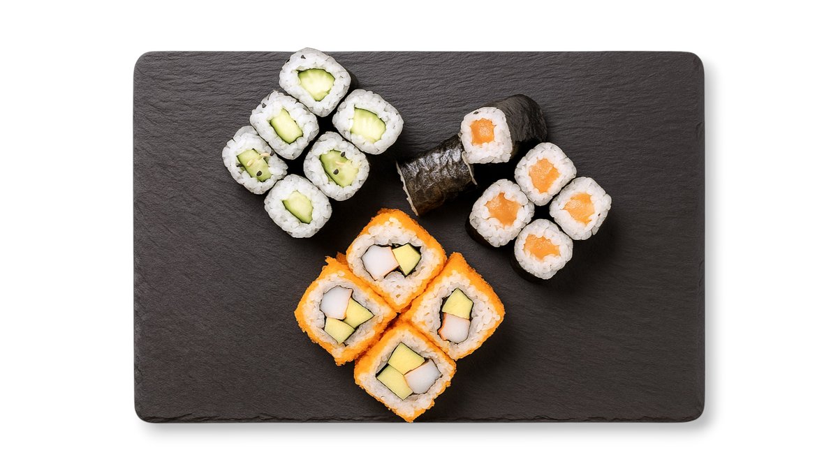 24 pieces with 2x Nigiri Sake, 6x Maki Sake, 8x Alaska Roll and 8x Philadelphia Roll