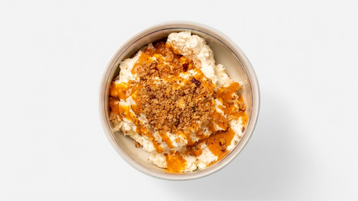 mit Kartoffel-Tortellini, Knoblauchjoghurt, Tomaten-Chili-Butter und Urfa Chili