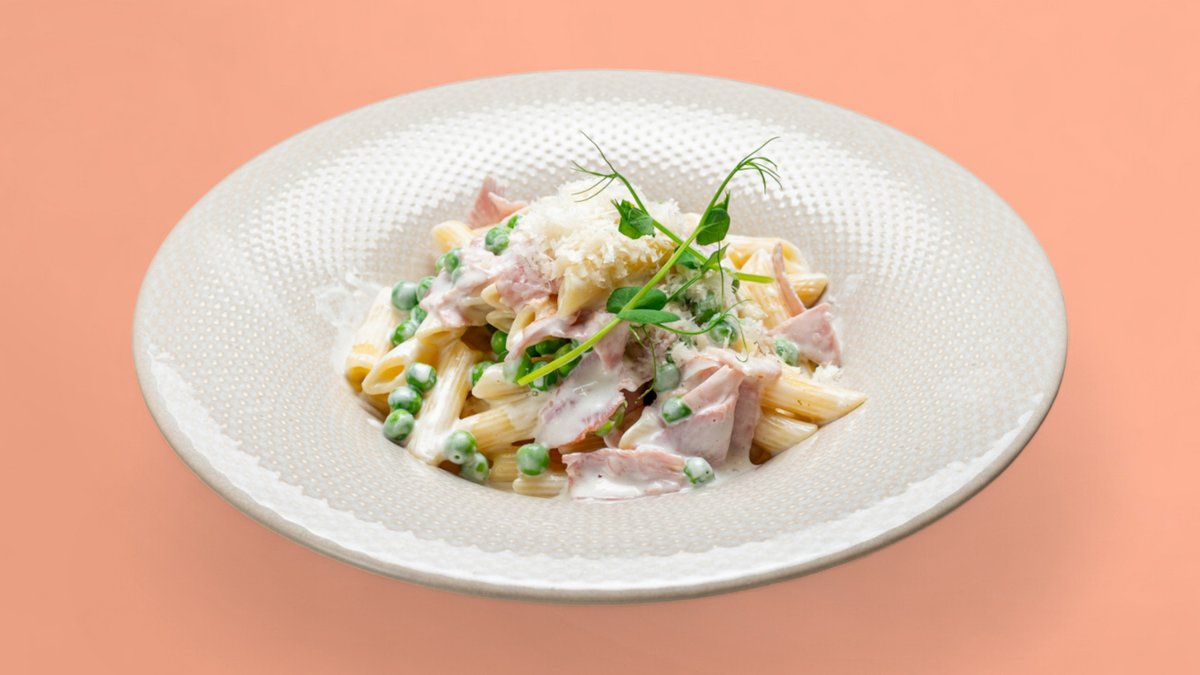 with breaded chicken breast, bacon from pork, Parmesan and Caesar dressing