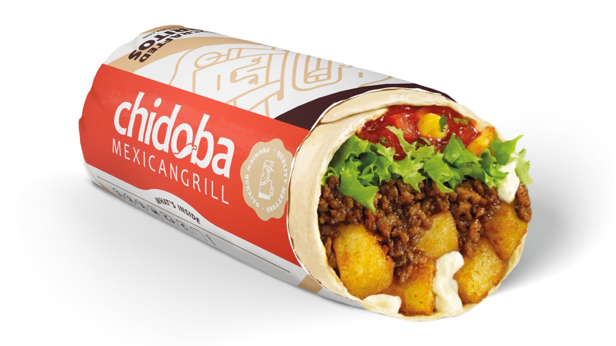 gegrillte Weizentortilla mit frittierten Kartoffelwürfeln, Chili con Carne mit 100% Rindfleisch und Cheddar-Käsesoße