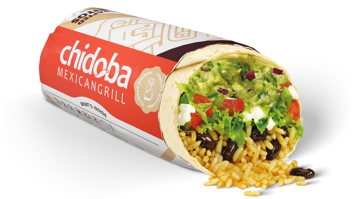 alle Burritos werden mit einem Weizentortilla, schwarzen Bohnen, Zwiebeln-Paprika-Mix, Cheddar Jack Käse, Limettensaft, zwei Soßen und einer Basis deiner Wahl zubereitet