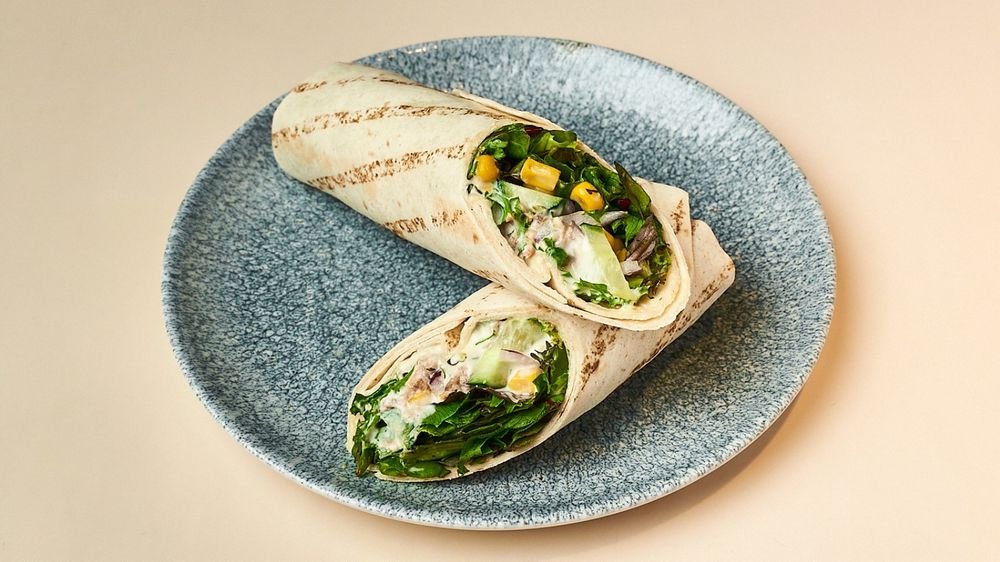 mit Thunfisch, Salat, roten Zwiebeln, Gurken, Mais und hausgemachter Remouladensoße