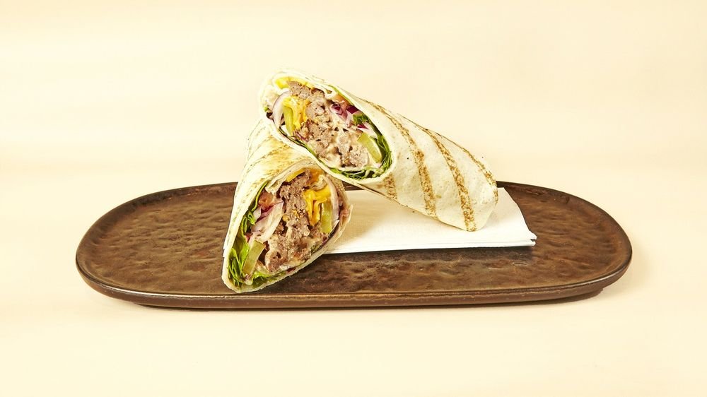gegrilltes Hackfleisch, knackiger Salat, hausgemachte Burgersauce. geschmolzener Cheddarkäse, Tomatenwürfel, Zwiebeln, Gürkchen