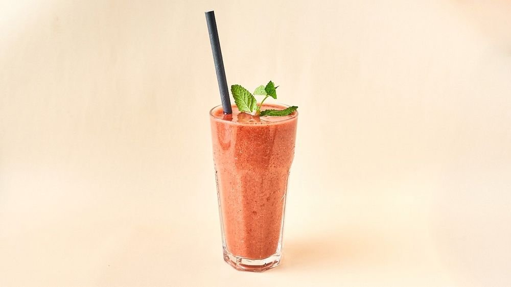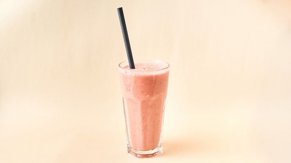 mit Erdbeeren, Naturjoghurt, Honig und Apfelsaft