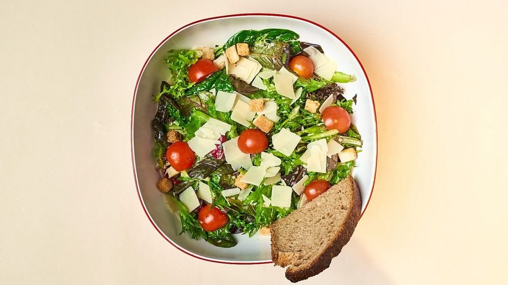 Einfach 4 Basic-Toppings auswählen - wer möchte, mit Extra Toppings und Dressing ergänzen - und den knackfrischen Salat mit Brot genießen