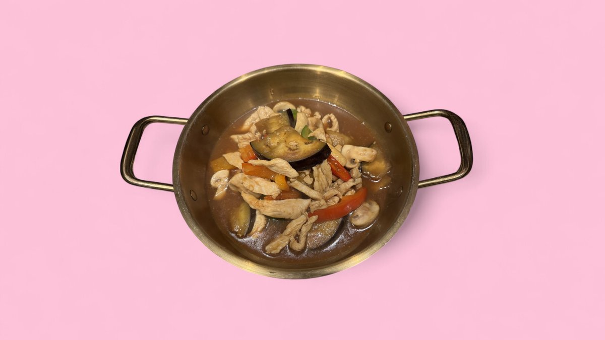 slightly spicy with fresh basil, eggplants, champignons, bell peppers, chili peppers and Thai herbs