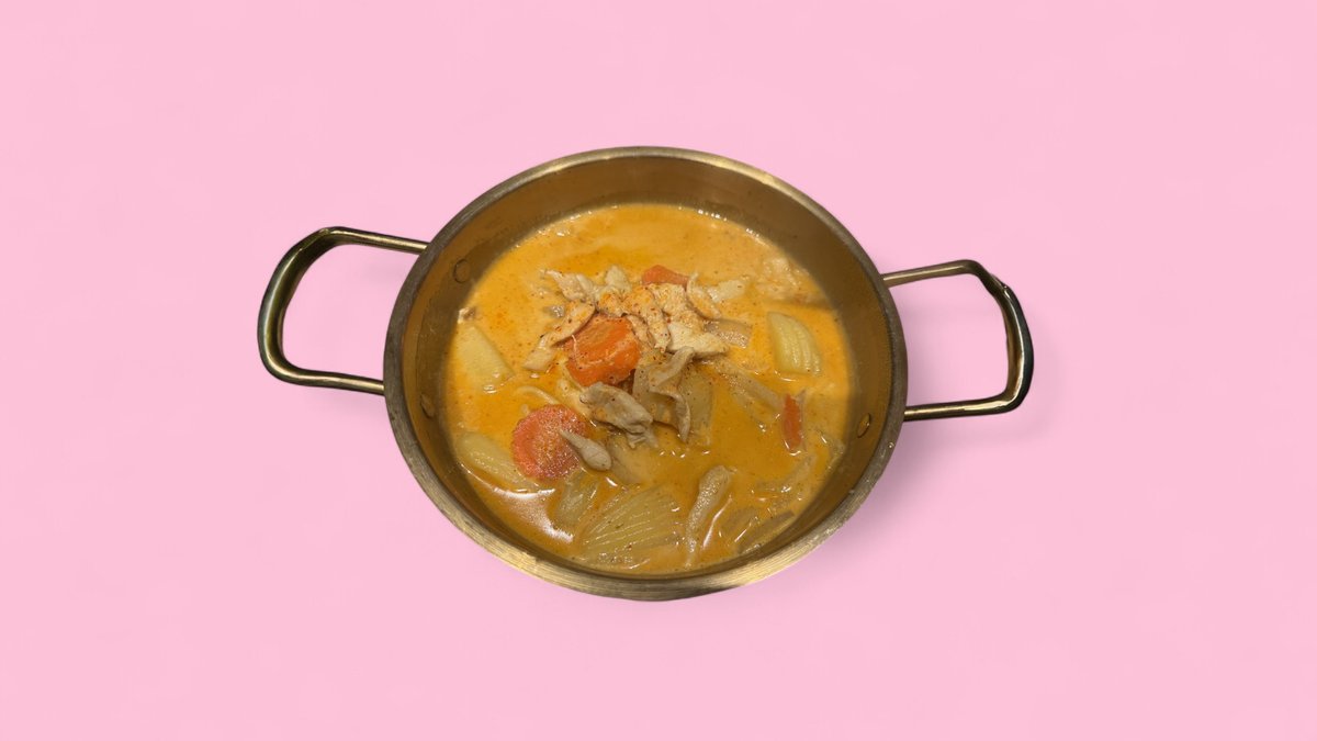 slightly spicy red homemade curry with coconut milk, various vegetables, chili peppers and basil