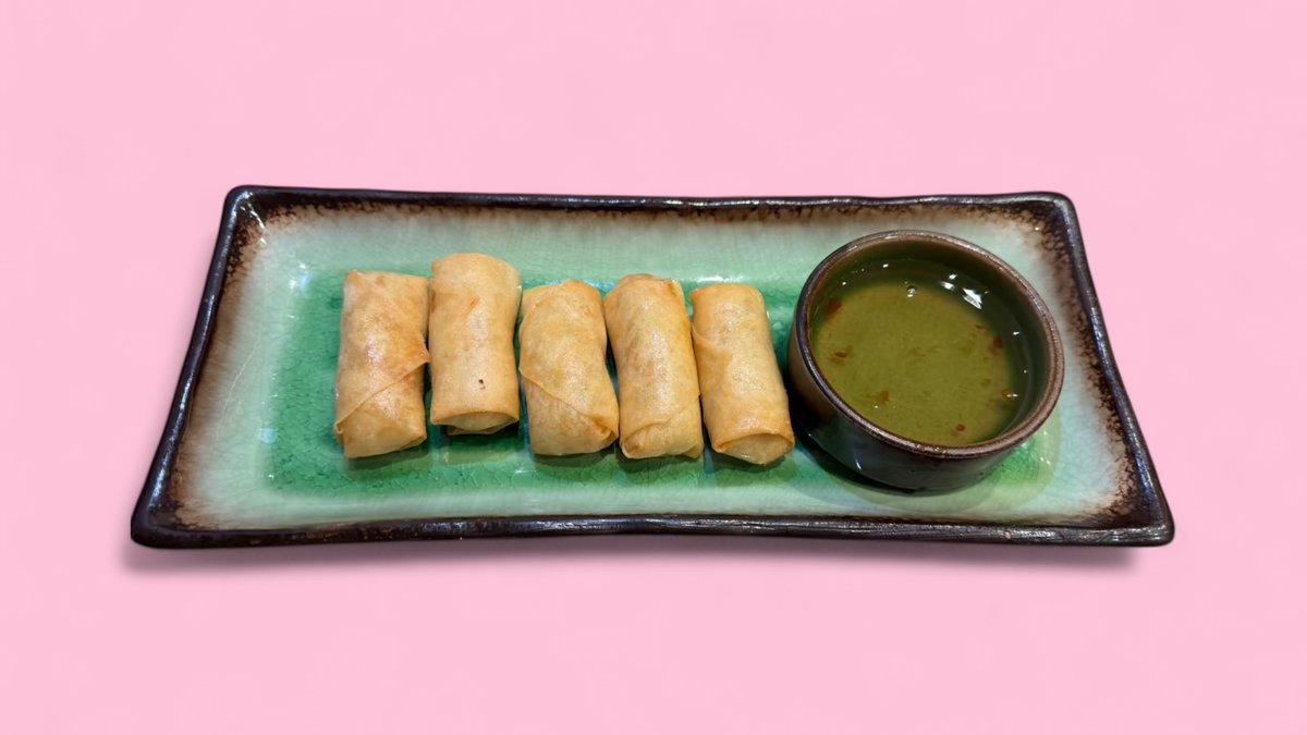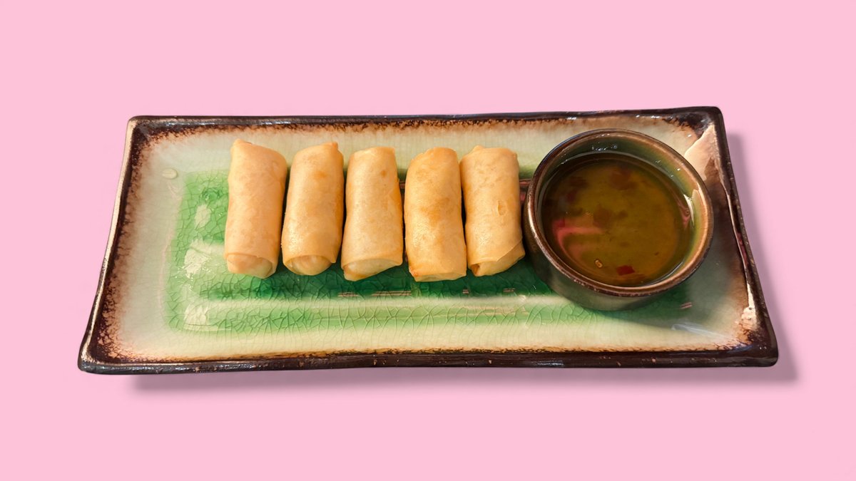 vegetarian spring rolls filled with glass noodles and vegetables, served with sweet and sour sauce