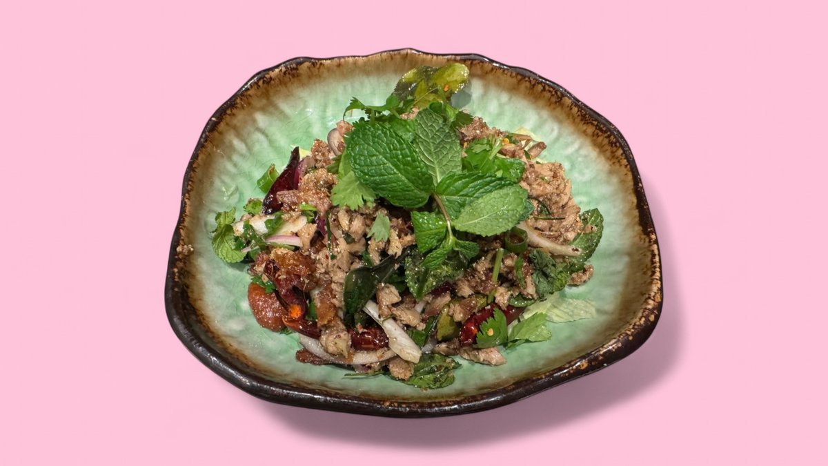spicy minced chicken fillet with chili, onions, shallots, lemongrass, herbs and lemon juice