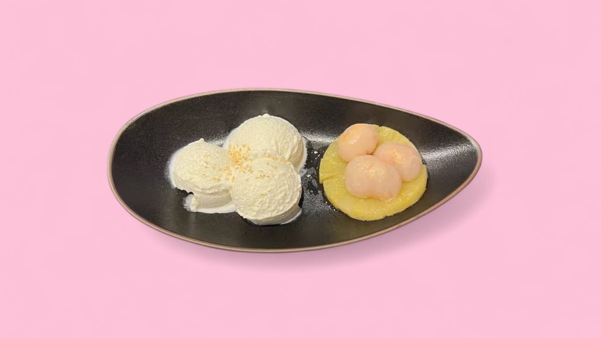coconut ice cream with lychee and pineapple