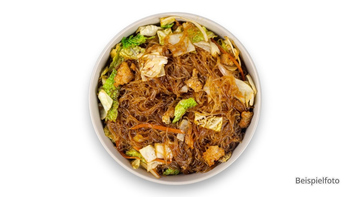 fried glass noodles with eggs, broccoli, Chinese cabbage, cauliflower, bean sprouts and peanuts