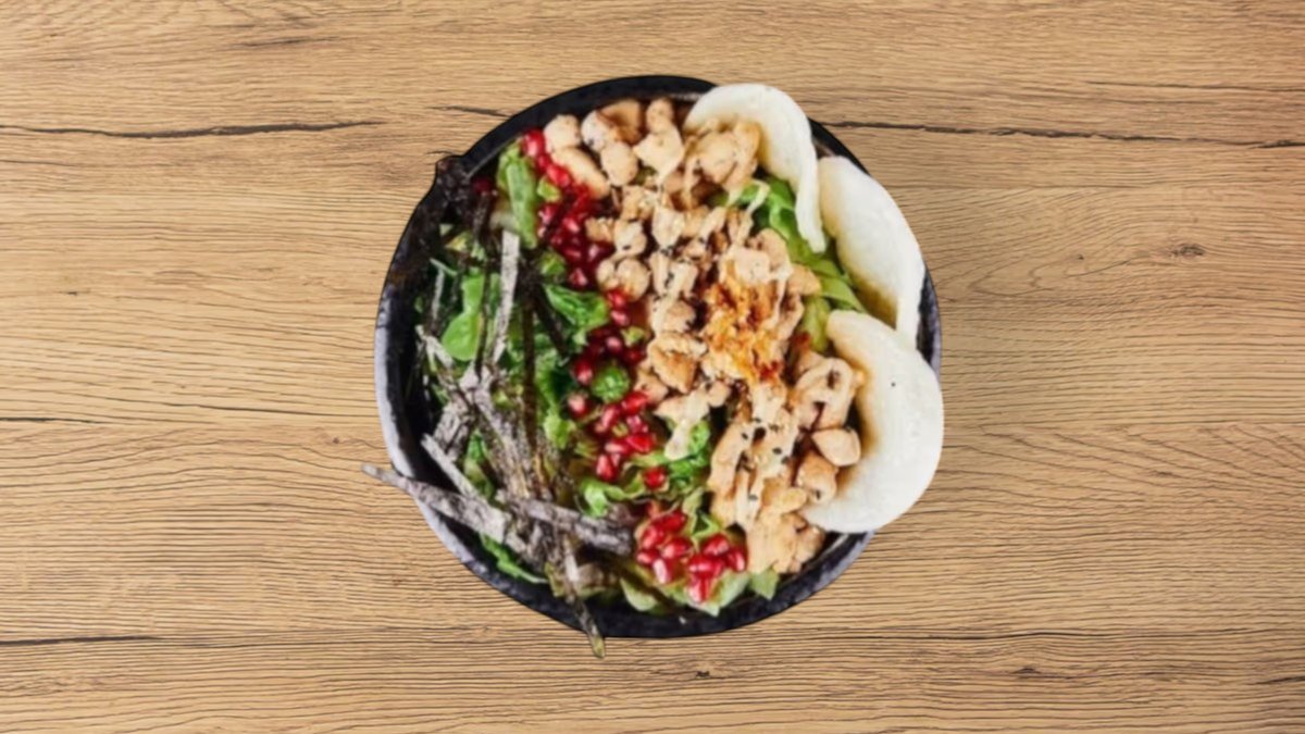 salad mix with in-house Caesar kaffir dressing, lime chicken breast and Parmigiano