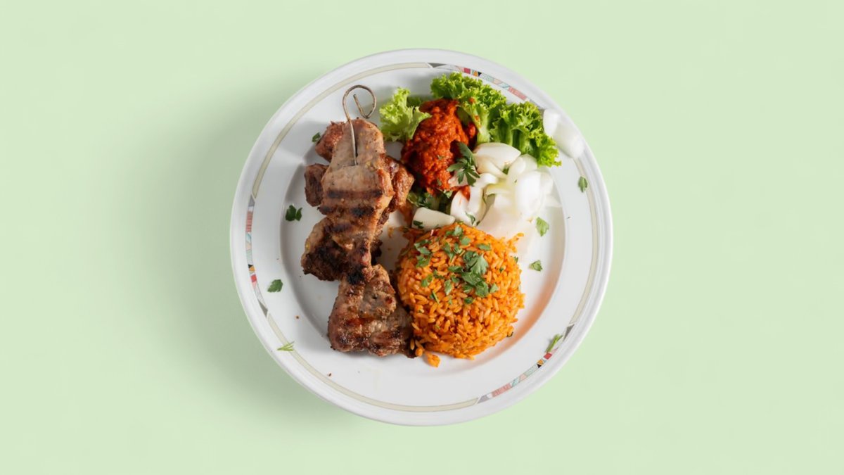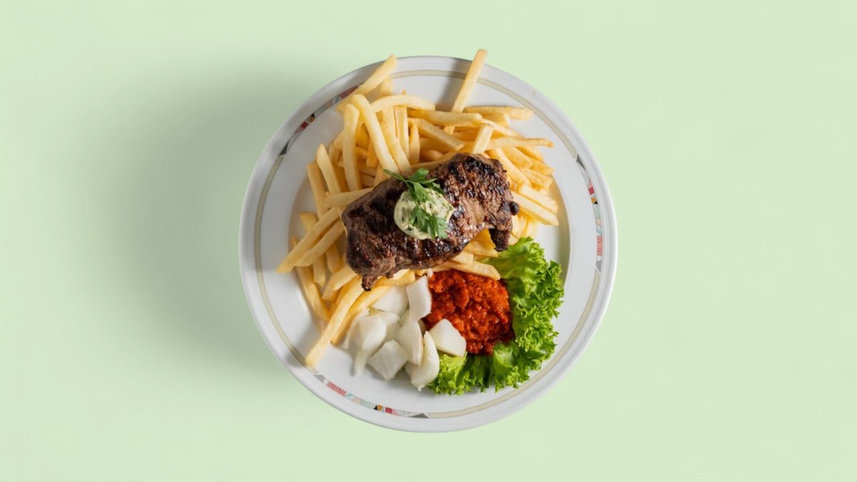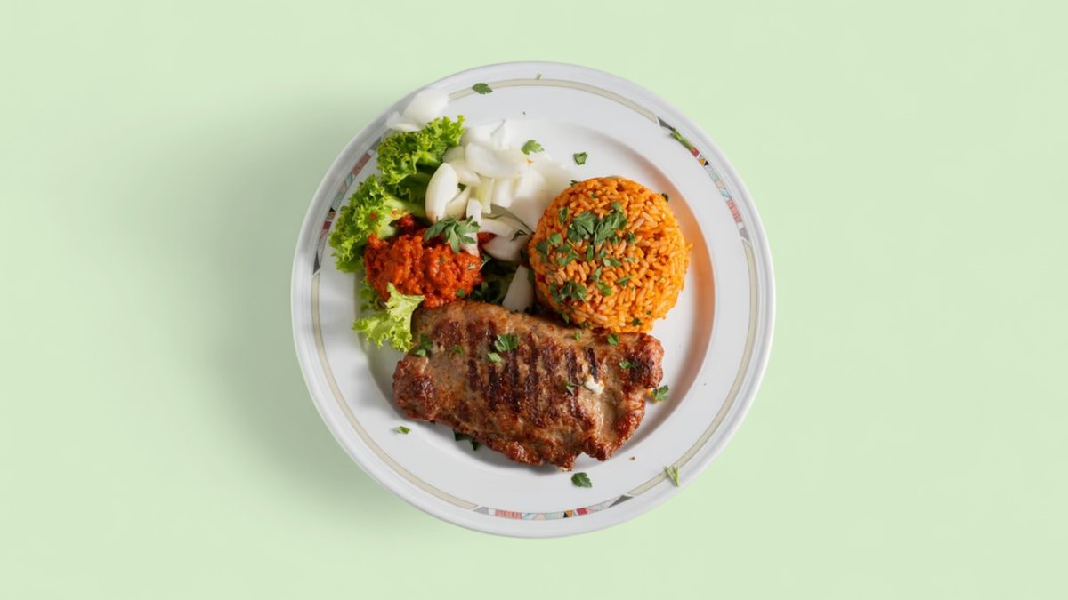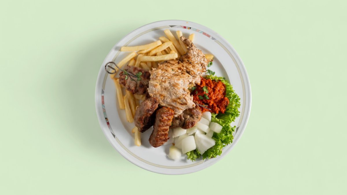 all dishes are served with ajvar, onions and a colorful salad plate (“Rump Steak with Bell Pepper Sauce” is served without ajvar and onions)