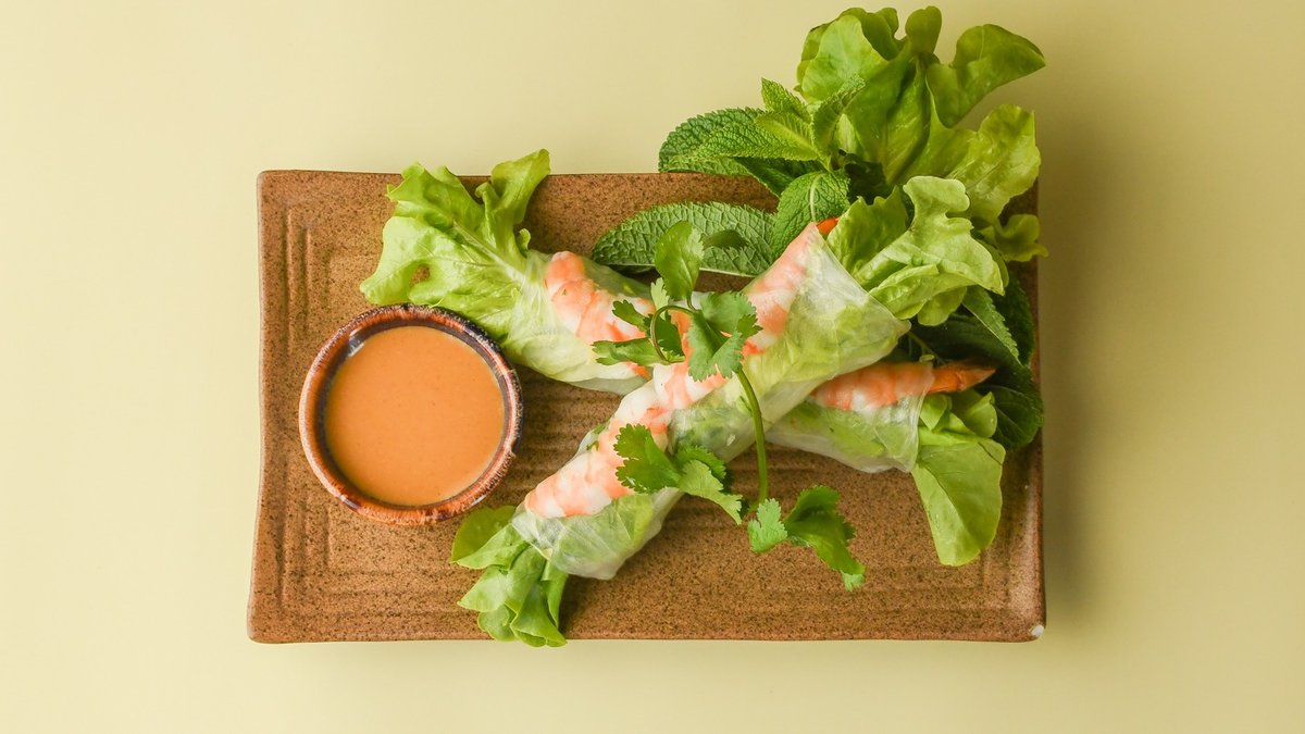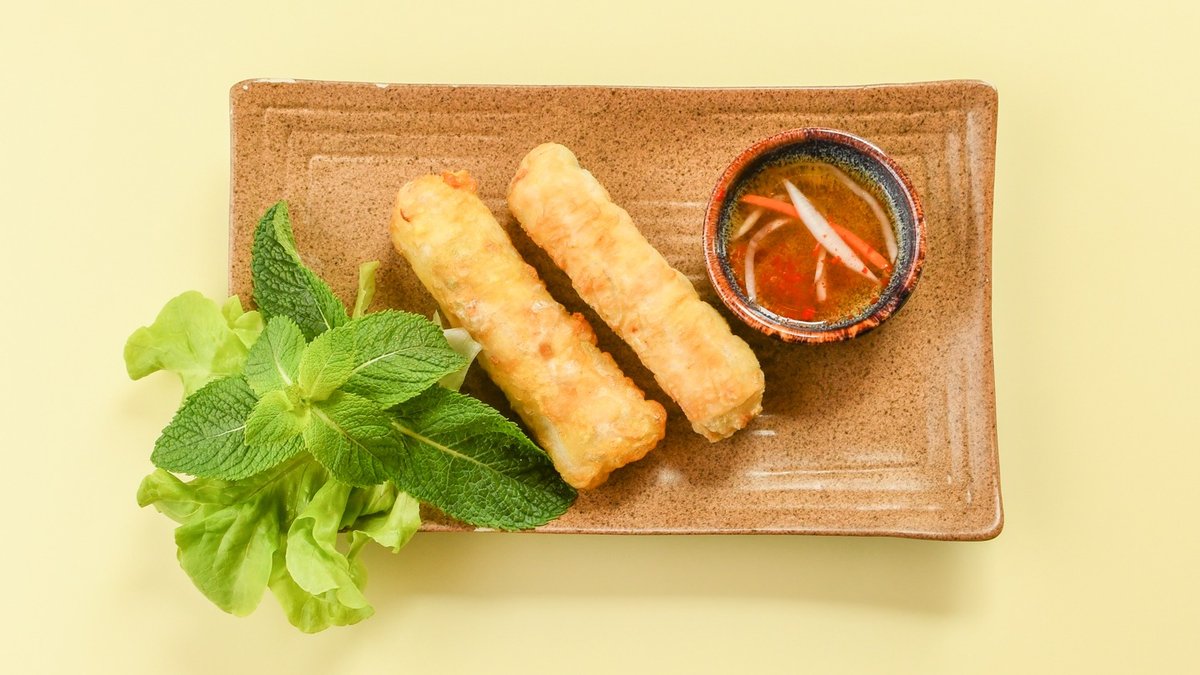 3 pieces, crispy spring rolls filled with pork, glass noodles and morels, served with nuoc mam sauce