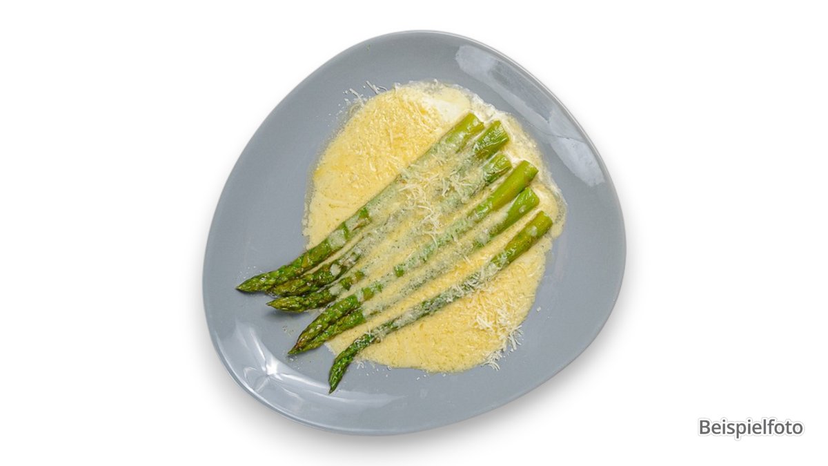 with asparagus, ham, hollandaise sauce, cream and gratinated cheese