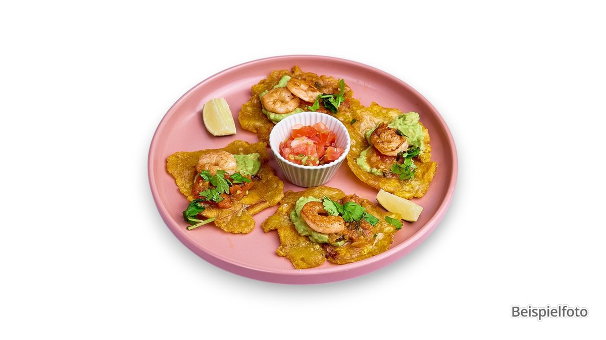 crispy plantain cakes filled with avocado and cheese