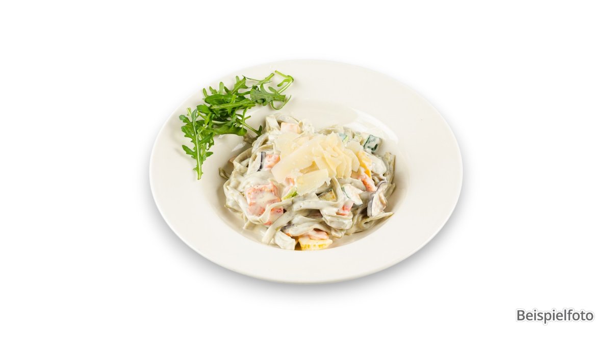 with chicken strips, aromatic cream sauce and Mediterranean herbs