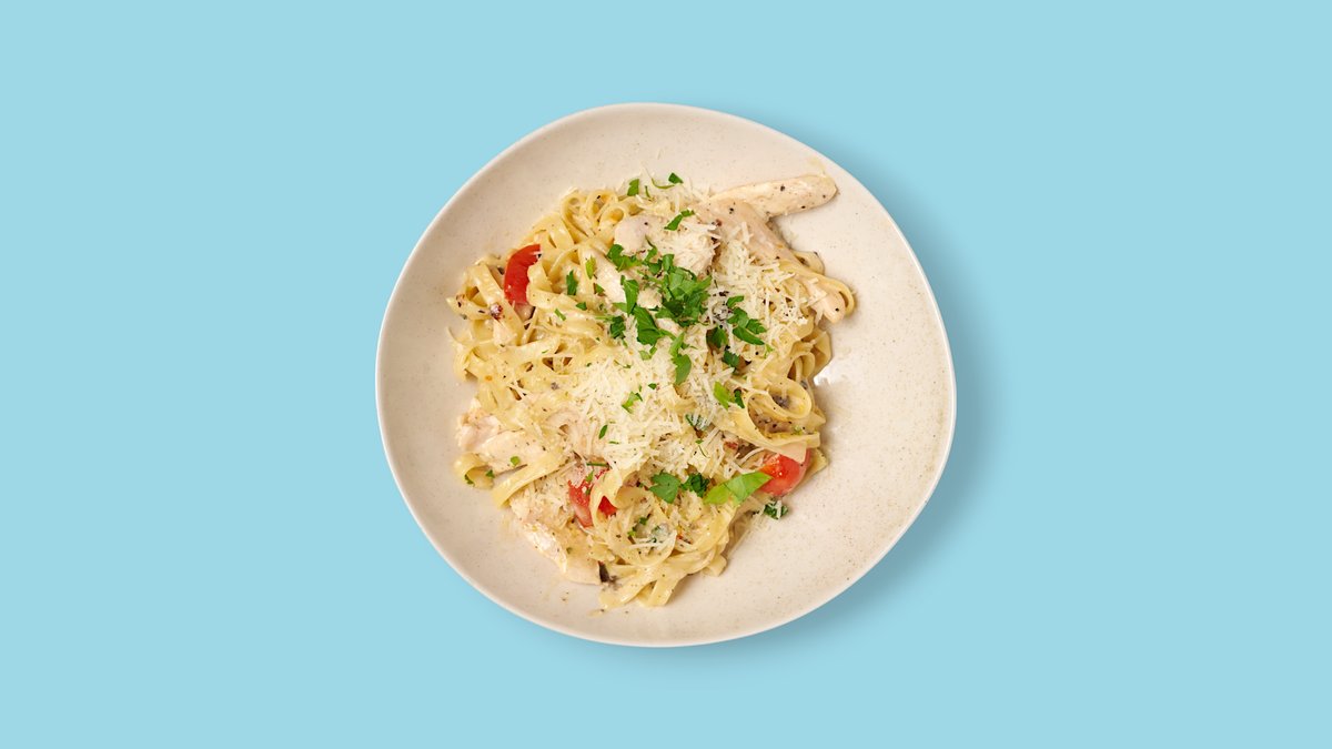 with creamy truffle cream sauce, juicy chicken strips and refined with truffle oil