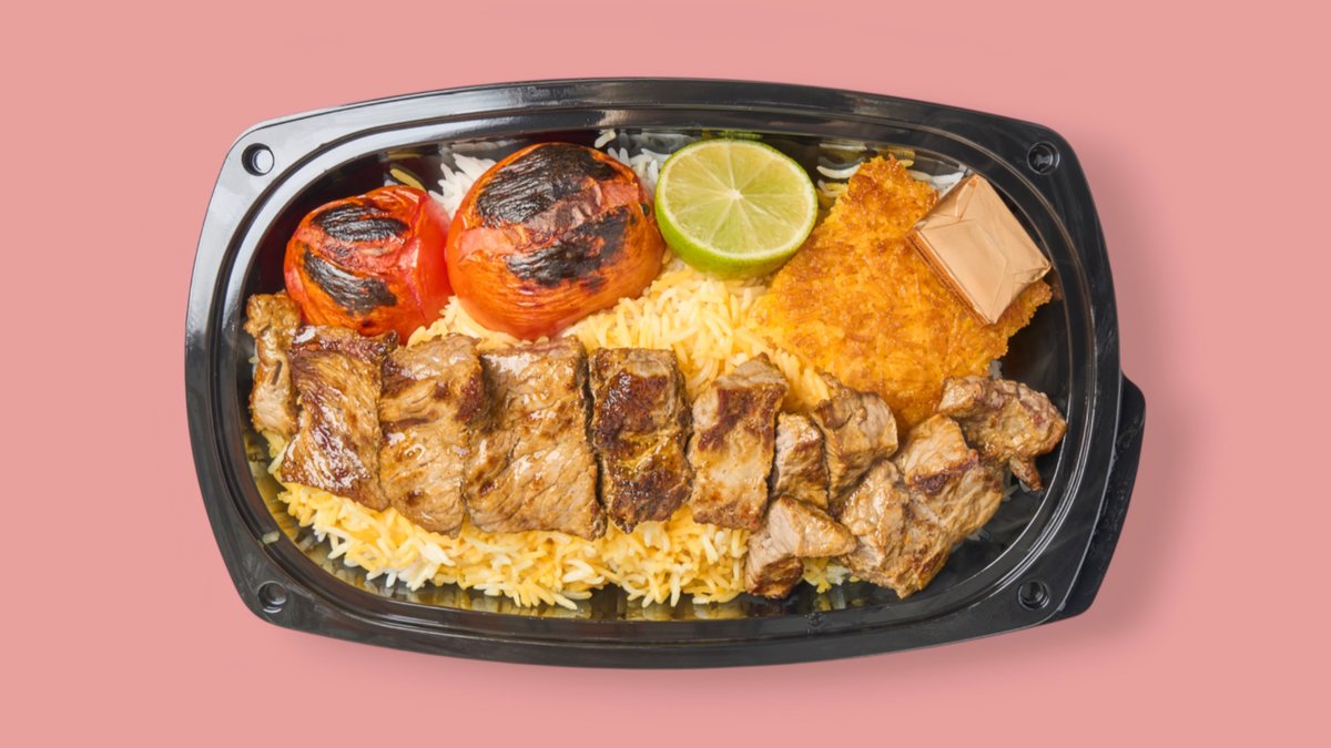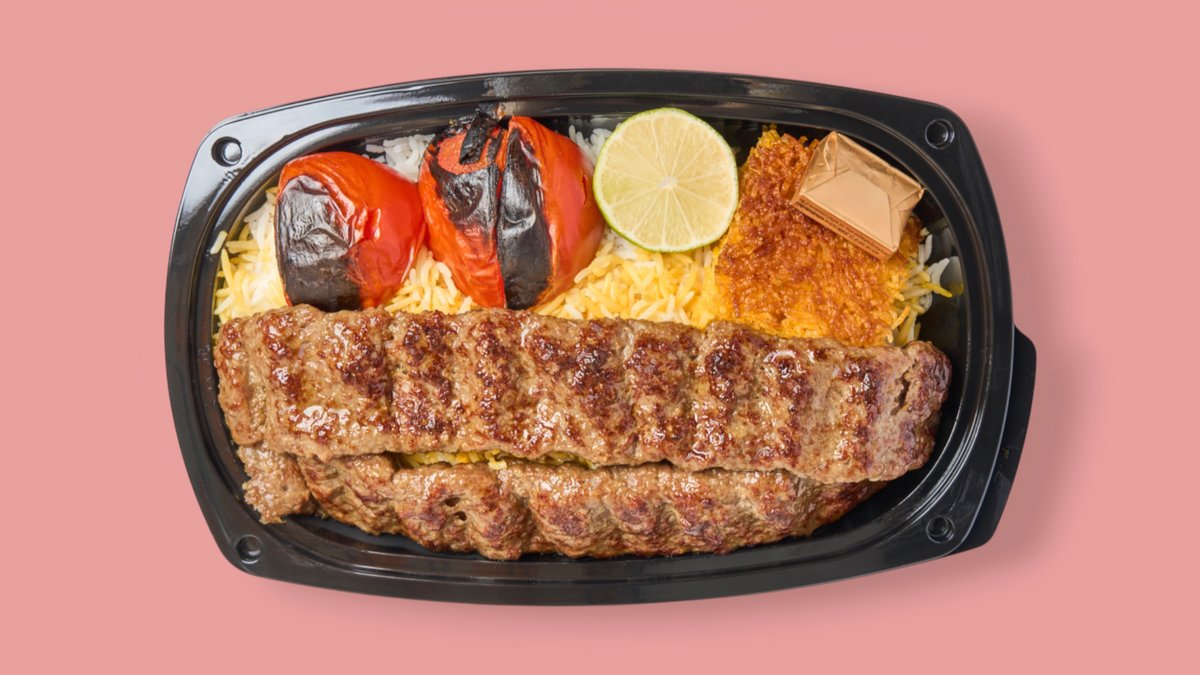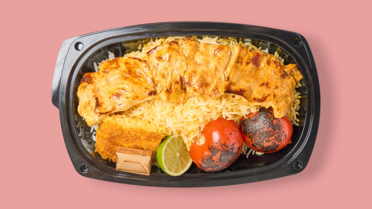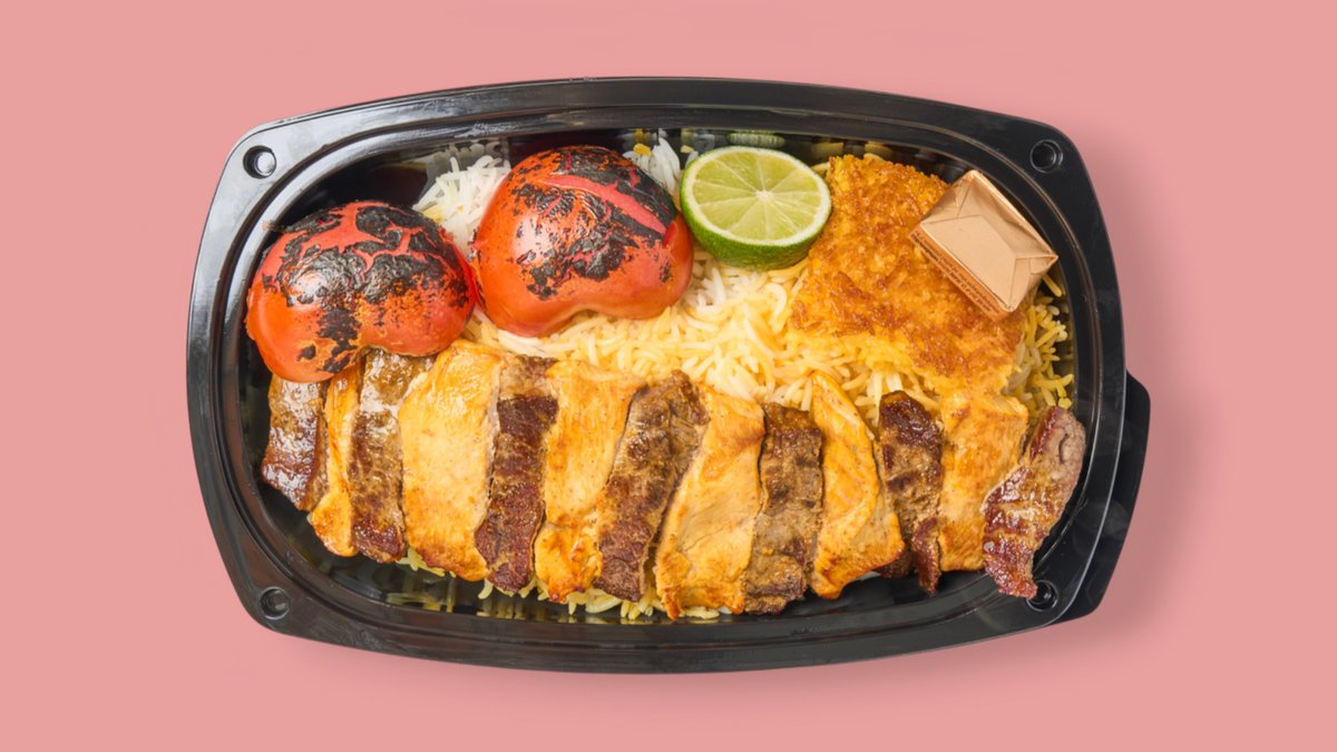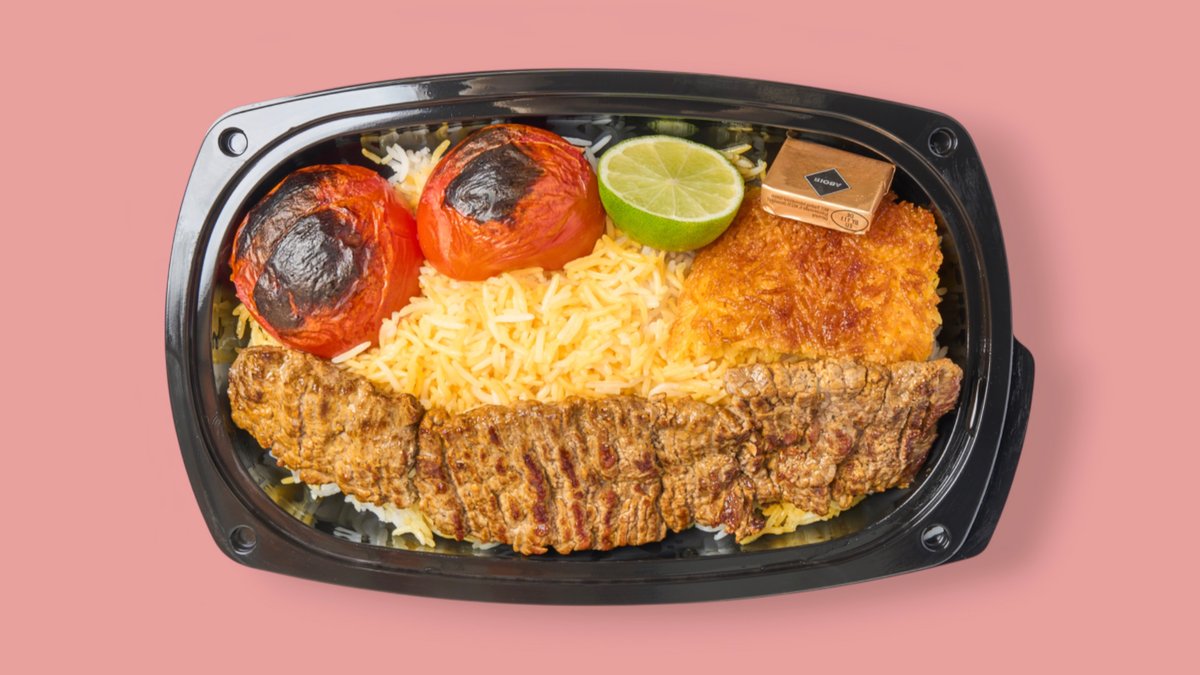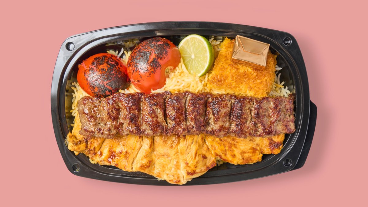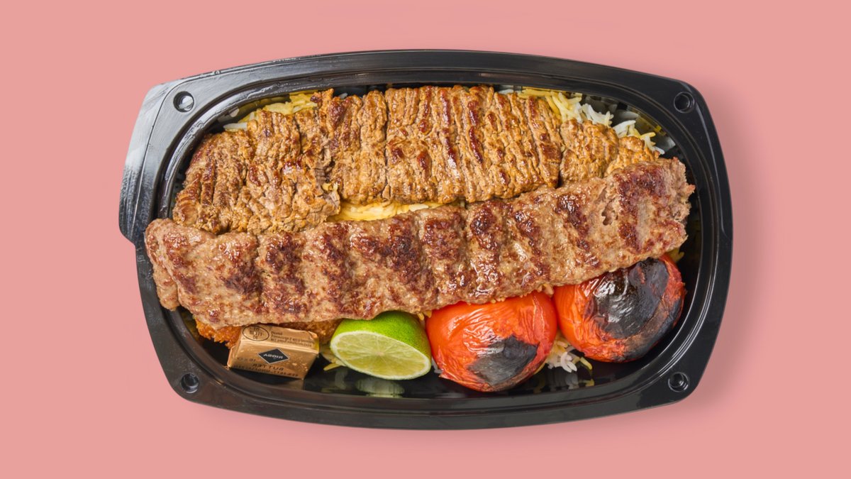 juicy, buttery soft with tender pieces of lamb and chicken, grilled over an open ember, served with saffron rice and grilled tomatoes
