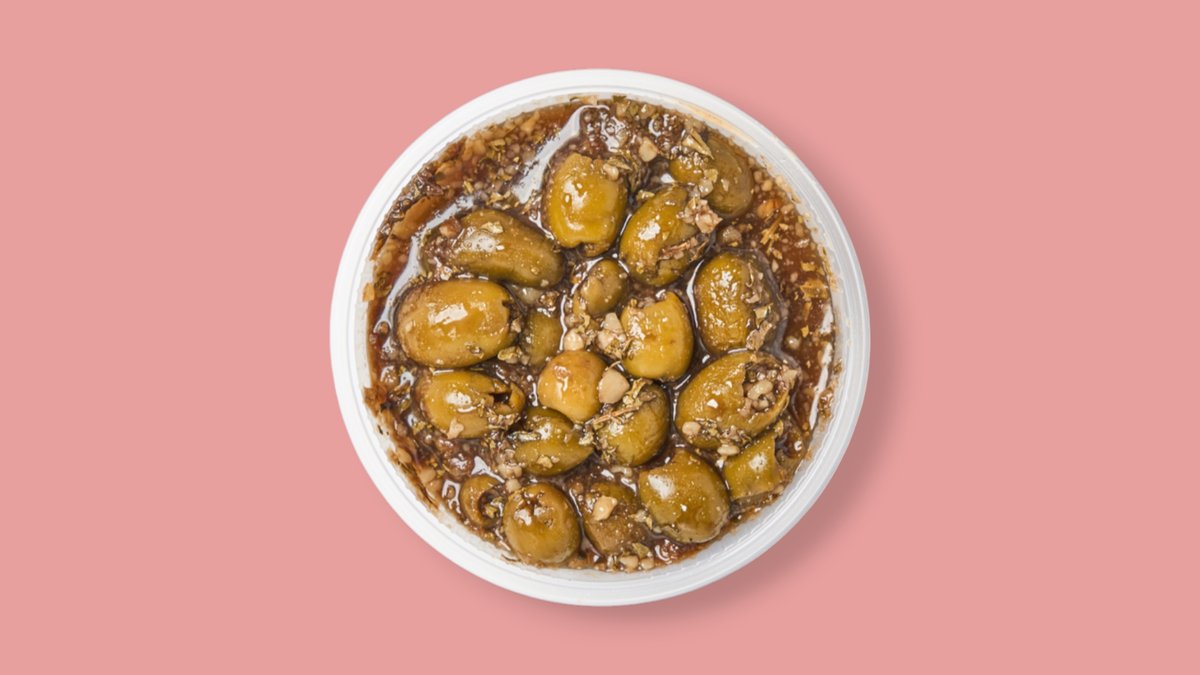 North Persian style with pickled green olives in a fruity pomegranate sauce, with garlic, walnuts and mint