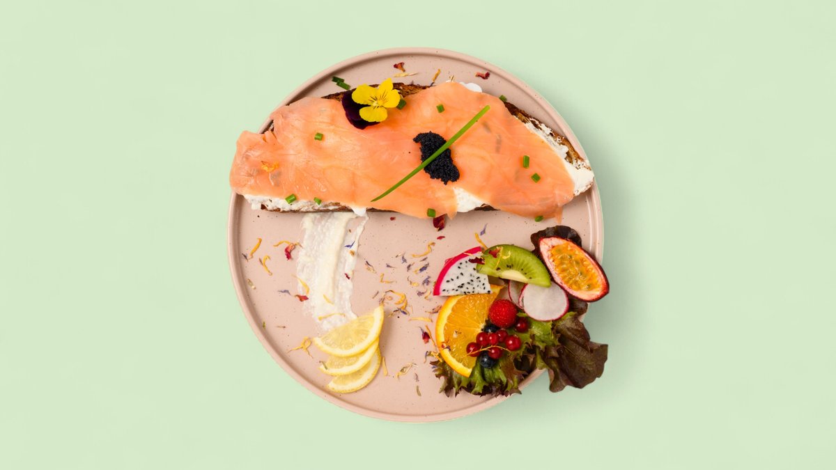 Sauerteigbrot mit Meeretisch-Sahne, pochierten Eiern, Premium Lachs und Caviar