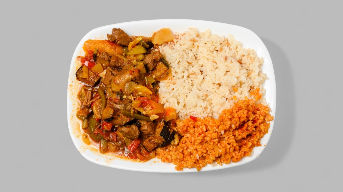 mit Lammkoteletts, Köfte-Spieß, Hähnchenspieẞ, Kalbspieẞ, Dönerfleisch, Salat, Beilage deiner Wahl und in einer Größe deiner Wahl